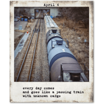 every day comes . and goes like a passing train . with unknown cargo