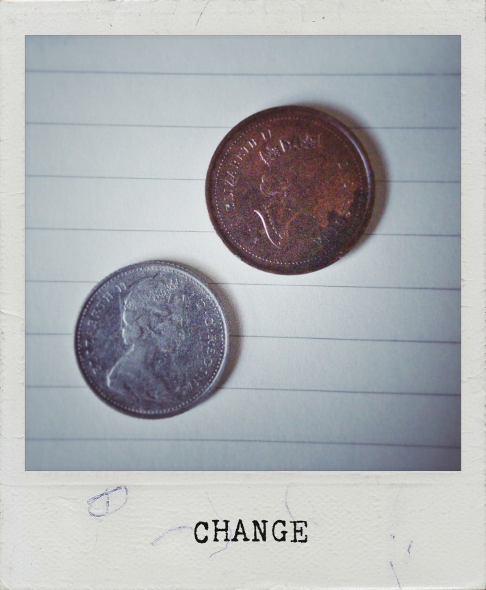 with change in our pockets; with
