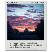 a storm brews somewhere . a butterfly flaps its wings . and danger passes