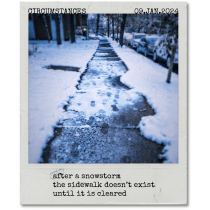 after a snowstorm . the sidewalk doesn’t exist . until it is cleared