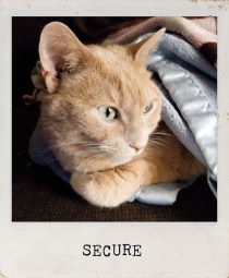 wrapped in a blanket with a view of her domain the cat feels secure