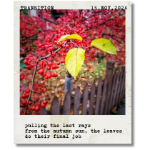 pulling the last rays . from the autumn sun, the leaves . do their final job